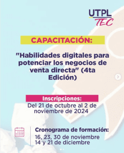 La transformación digital es esencial para el crecimiento de cualquier negocio, especialmente en un mercado tan competitivo como el actual. Si eres emprendedor o estudiante, esta oportunidad es para ti: la Universidad Técnica Particular de Loja (UTPL) está ofreciendo 150 becas en habilidades digitales para ayudar a potenciar los negocios y brindar conocimientos digitales esenciales. Con una formación completamente online y gratuita, esta capacitación comenzará el 16 de noviembre, y tienes hasta el 2 de noviembre para inscribirte.